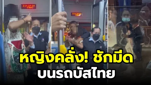 หญิงคลั่งชักมีดบนรถบัสที่ไทย ในขณะที่รถแน่นไปด้วยผู้คน